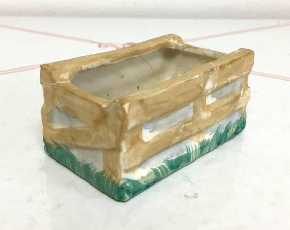 Vintage 1950's "Two Pigs in a Pen/Sty" Salt and Pepper Shaker Set - The previous owner liked to put the date she received (or bought) her sets on the bottom of them. This one is dated 1953. Includes both corks. The pen has been broken and reglued, but still looks great from the outside. It is approximately 2.75" wide and 2.75" tall. Made in Occupied Japan of ceramic. $10