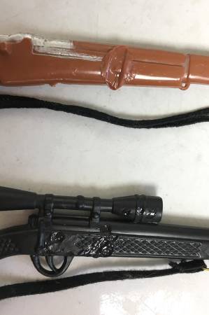 Vintage 1960's/1970's GI Joe Rifles - Adventure Team & Long Gun - I have two vintage GI Joe rifles for sale. From my research, it looks like the black one is a 1960's GI Joe Adventure Team Black Scoped Hunting Rifle w/ Sling (6" long). The brown one looks to be an M-1Long Gun (7.25" long). They are in excellent condition, but not perfect. I do see a couple melt spots on both. Still very displayable, though. $15 for both