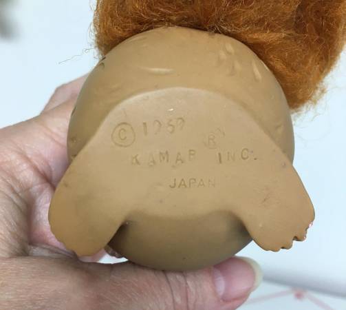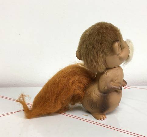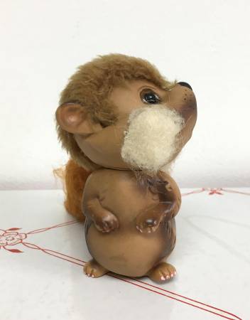 Vintage 1969 Kamar, Inc. Furry Rubber Squirrel With Bendable Tail - This is the cutest squirrel ever! Look at that expression on his face. His body and head are made of rubber and are still pliable. He has fake fur on his head and cheeks. His tail is wired so is bendable for different positions and is made of the kind of fur the old Troll dolls had for their hair. His head turns so he can face in different directions.