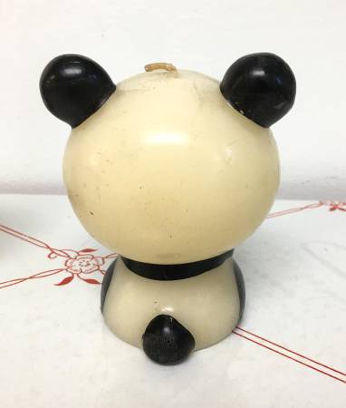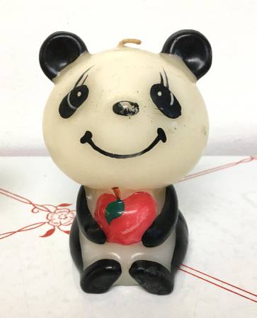 Vintage 1970's Panda and Puppy Wax Candles - These cute little candles are unused and in good condition. The panda candle does need a light cleaning to look its best, though. The doggie is approximately 5.25" tall and the panda is 5" tall. $10 for both