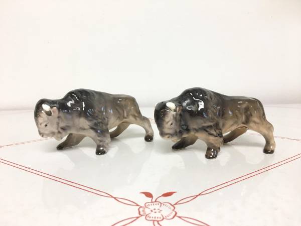 Vintage Bison/Bull/Buffalo Salt & Pepper Shaker Set by "Relco" - This vintage set is made of ceramic and is in excellent condition and includes its corks. Made by "Relco" in Japan. Approximately 4" long by 2.5" high.