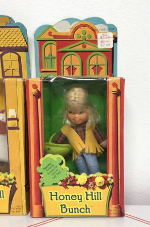 Vintage Mattel 1975 "Honey Hill Bunch - Spunky" Doll - I have nine different Honey Hill Bunch dolls available. This listing is for "Spunky". It is approximately 5" tall. Please note that the photos of the back of the box do not necessarily belong to this doll. I'm using the same "back" photo for all nine listings.