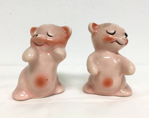 Vintage Van Tellington "Bear Hug" Salt and Pepper Shaker Set - This set is made of ceramic and is in excellent condition. Even include their original corks. I see no chips or cracks. They stand approximately 3.25" tall.