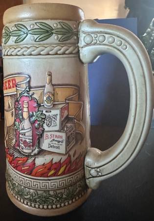 Stroh’s Vintage Heritage Series VI Beer Stein. 1980s. #107595, stands 7 1/2” tall. Excellent condition. No chips, cracks, odors or wear. Porch pickup. Dearborn. $35.