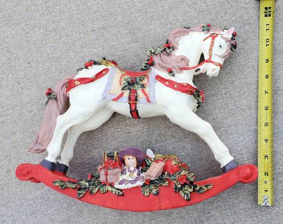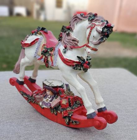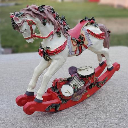 Vintage Large Christmas Rocking Horse with Musical Instruments.