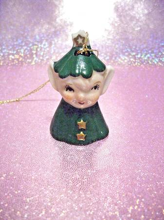 For your consideration: Item description from the seller VINTAGE ELF PIXIE BELL ORNAMENT FIGURINE RARE INCREDIBLE FIND! SO CUTE. VHTF ADORABLE ELF Bell Gold adorned & stands about 2" tall with...