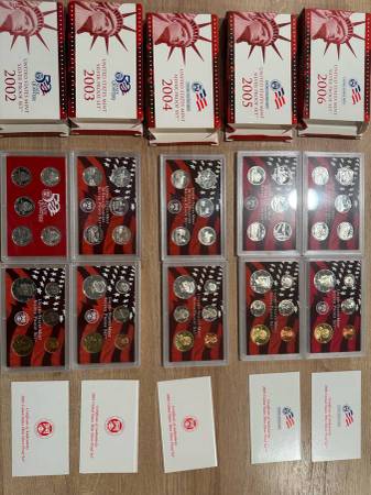 MULTIPLE 'RED BOXED' SILVER PROOF SETS AVAILABLE BELOW SPOT. Each set includes $1.85 in SILVER COINS; with the dollar included the value of silver at spot is about $65. Have multiple sets available dated 2002 to 2006. NO DISCOUNT for multiple purchases; on sale for spot. Listing will be removed once sold; no need to ask.