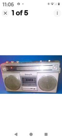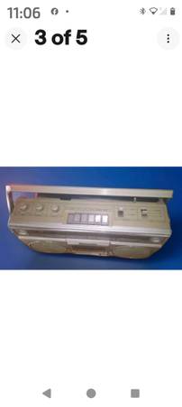 The Rare Retro Panasonic Rx 5010 AM/FM Cassette Recorder Boombox is a vintage audio device that offers a unique listening experience. This silver boombox features a cassette tape player for listening to cassette tapes, as well as AM/FM radio capabilities. With standard speakers on the boombox and a headphone jack for private listening, this Panasonic boombox is a versatile and nostalgic addition to any portable stereo collection. The antenna is broke off, but still clearly plays several radio stations for both AM & FM The unit also includes a 1/4" jack for connecting a microphone, making it a convenient all-in-one audio device for retro music enthusiasts.