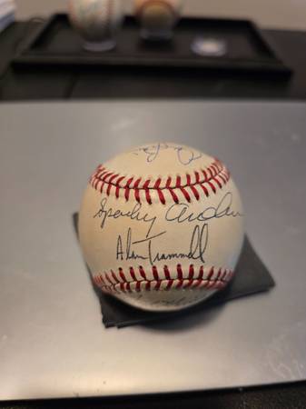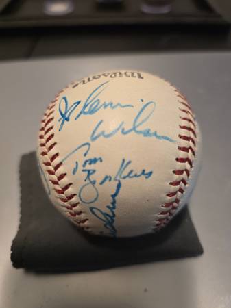 I have 2 Balls signed by some of the1984 Detroit Tigers. I used to go to card shows but gave it up long ago. So Ball 1has 13 autographs. and Ball 2 has 12 autographs. I will list the names on each ball. Ball 2 does have Glen Wilson on it. He was not with the 84 Tigers but rather the 1983 team. The rest of the players are all 1984. Selling each ball for $175 Each. They are not authenticated but I did get them all at card show signings in person. To get authenticated would cost more than what I'm selling them for so it makes no sense. That's why I'm selling at a lower price. They are all guaranteed I got them in person signing. sIf someone does want to buy both balls Ill go $325 for both and I will include the nice 3 ball display case which cost $49.00 originally for free. Holds 3 Balls and glass covered and mirrored at no extra cost. At $175 for 13 autographs and the other with 12 autographs that's 25 autographs total. At $350 or $325 for both that comes out comes out to $14 an autograph. You know they all cost more than that to sign. Sparky is deceased. A couple HOF and I'm sure everyone knows what Gibson charges these days to sign. Gibson charges between $150 and $200 now. The 1st 4 pictures are Ball 1 and the next 5 pictures is Ball 2.