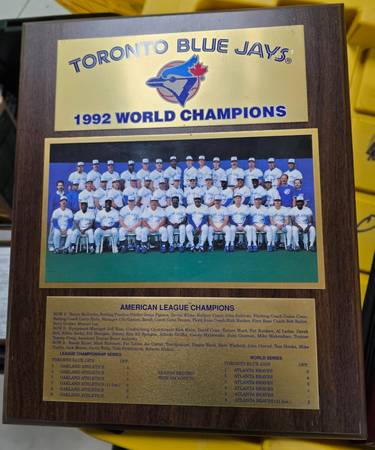 1992 and 1993 Toronto Blue Jays' World Series Plaques. Excellent like new condition. Both for $60.00