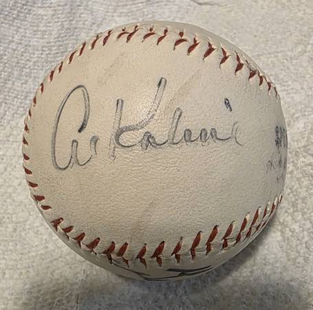 A Detroit Tiger Baseball autograph by Al Kaline and George Kell. It is not authenticated but I guarantee I got the autographs in person. Got it long ago. I used to go to shows but quit awhile back. Any baseball autographs I have are in person. The ball is in very good shape. It is still white. Has held up pretty good for having it so long. I've had it for over 40 years. Kell and Kaline are both in the HOF and were a great TV team. 2 very famous Detroit Tigers.
