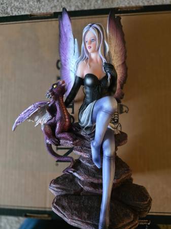 6 Fairy and dragon Statues. Polymer. Bery beautiful. Selling each one for $40. If interested in buying all 6 I will sell the 6 for $150ehich would be $25 each. They each cost mote than $50. All excellent except one. The second one the right arm came off when ex wife packed this statue. I have the arm. I just don't know what kind of glue to use. Also the wings on that one just a very small tip of the wings came off. Don't have those. They are all beautiful. The sizes of each are listed according to the pictures. I have lowered the price several times. Can't go any lower. If they don't sell I will just hand them out to relatives.