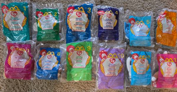 I have 5 complete Sets of McDonalds 1999TY Beanie Babies. All are in original sealed bags. A total of 8 sets. There are 12 in each set and are as follows: