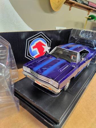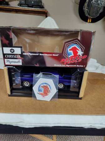 Matco 1969 Plymouth Road Runner Hemi. 1/18 scale. Beautiful Blue paint job. Like new condition and so is the box. If interested, please call or text 734-30six-eight-eight-one-one