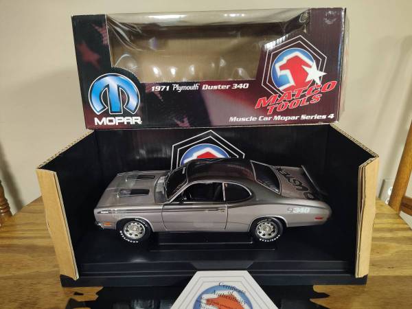 Matco 1971 Plymouth Duster 1 /18 diecast series 4. Car is very nicely detailed engine and other parts of the car.Open box just for pictures. New condition. Silver in color. If interested call or...