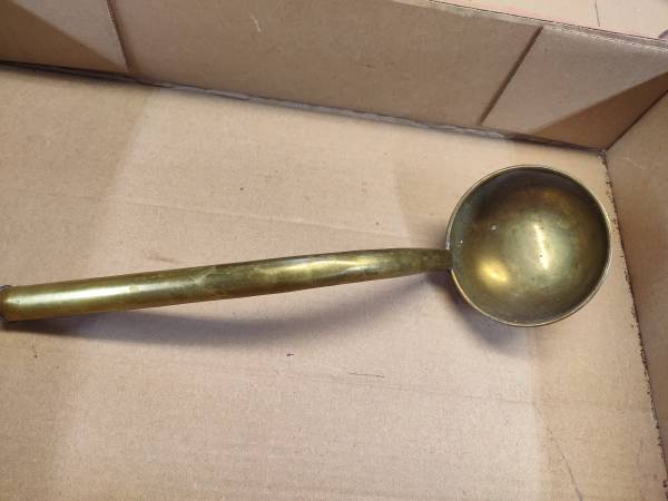 Early brass ladle. Could be a early punch bowl ladle. It's in great shape. If interested call or text 734-30six-eight-eight-one-one