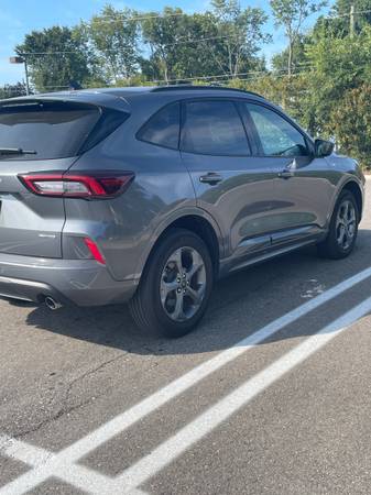 2024 Ford Escape ST-Line. 10,500 miles. All wheel drive. Remote start. Loaded and comes with Ford's upgraded 13.2 inch navigation screen. Equipped with wireless Apple Car Play/Android Auto. Dealer owned and still under Ford's bumper-to-bumper warranty as well as Ford's powertrain warranty. Carfax shows prior damage, now fully fixed. Clear/Green Michigan title ready for transfer.