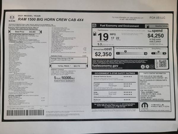 2021 RAM 1500 Big Horn/Lone Star 5.7L V8 4WD Crew Cab Short Box