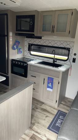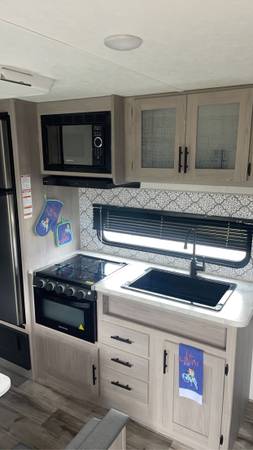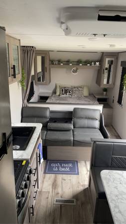 This RV's sleek and modern exterior will captivate onlookers as you glide by, while its durable frame is designed to tackle diverse terrains. With a mere 2,000 miles under its belt, it boasts a near-new condition that promises many more journeys ahead.