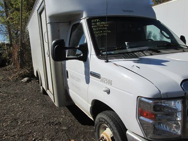 2023 Ford E350 14' Cutaway Van, 7.3L V-8 Gasoline Engine, Automatic Transmission, Spring Suspension, Hydraulic Brakes, AC, Side Door, Parcel Shelving, Box Dome Light, GVWR: 10,050lbs, Odometer Reads: 93,313 (Unverified), VIN:1FDWE3FK6PDD27426