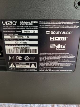 This is a 24" Vizio TV in mint condition. Model # is D24hn-G9. Works perfect and comes with original remote. Must be picked up in Plymouth or Brighton area. Ya gotta text or call me at Tim.