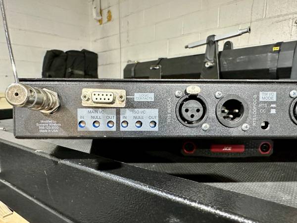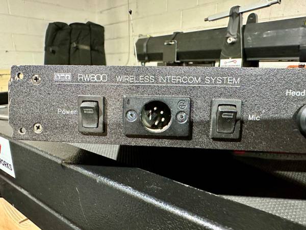 HME wireless intercom system with 4 belt packs and base station. this can be integrated into existing coms, or stand alone. Group and private chat between users. Perfect for small band, theatre group, stagehands, restaurants, etc.