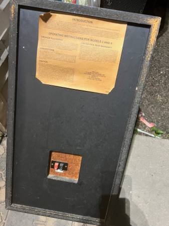 Really nice pair here, these are highly sought after by vintage purists, great condition. I presently have nothing to test them with but the woofers look to be in perfect condition and, nice tough, original instruction label on back of one of the speakers is intact. You are welcome to bring by a stereo if you want to test them, if I was able to test them myself I would be asking more. 313-282-3zero57 Jesse