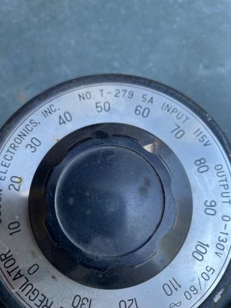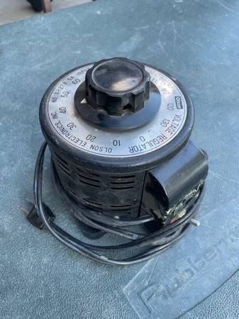 I have a Olson variable voltage regulator for sale. Look at the pics. It has a repair on the bottom but it works like it should. Model T-279. 5amp. Output 0-130V 50-60h.