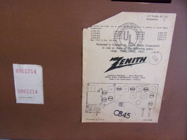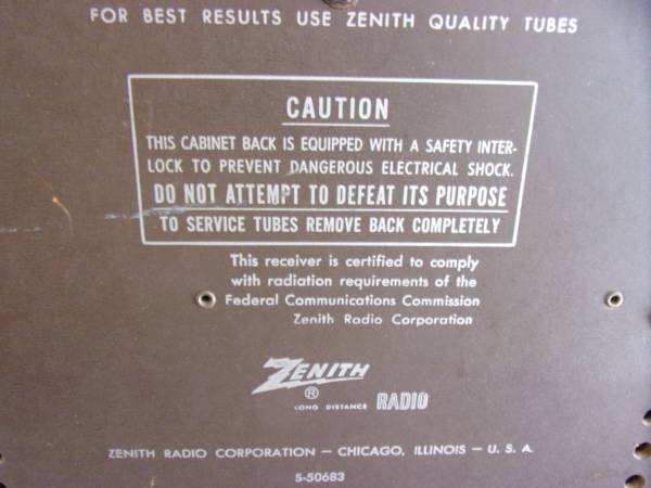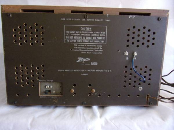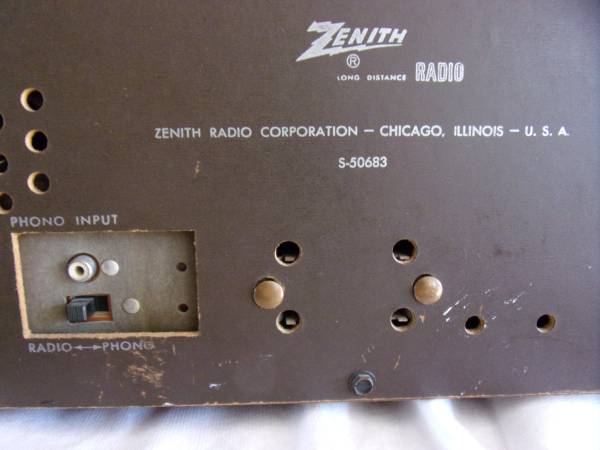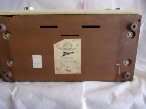Vintage Zenith High Fidelity tube table radio. S-50683 117V AC DC Amperes .5 15 1/2" Wide 10" Tall 8 1/4" Deep. Wood grain cabinet (not wood). Phono input outlet for hooking up phonograph speaker,...