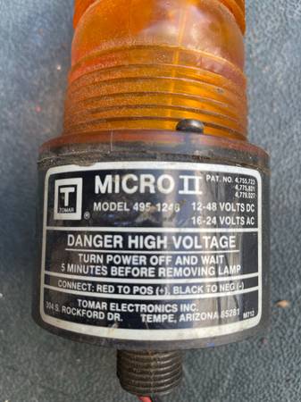 I have a yellow safety strobe light for sale. Look at the pics. Shipping available. Micro 2, Micro 11. For your Hi Lo, Tractor, cart, Golf cart. go cart, Etc. Halloween, 12 volts, Safety, garage -...