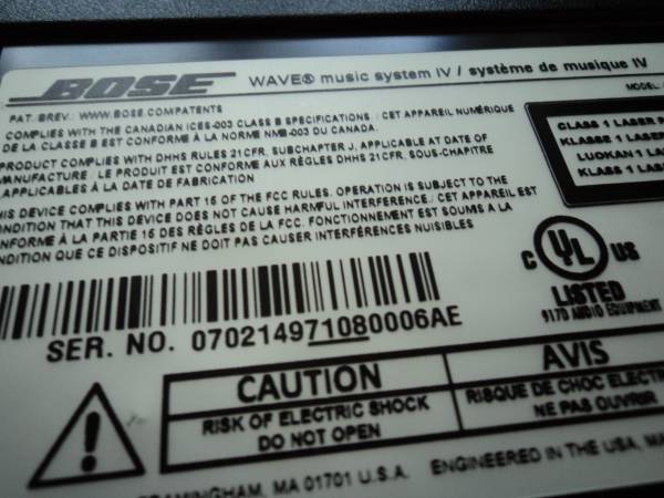 BOSE WAVE SOUNDTOUCH IV. COMES WITH REMOTE, CD PLAYER, BLUETOOTH AND AUX ALL WORK AS INTENDED. YOU WILL NEED THE CABLE TO CONNECT TO YOUR COMPUTER TO STREAM MUSIC. APPLE, PIONEER, MARANTZ, KENWOOD,...
