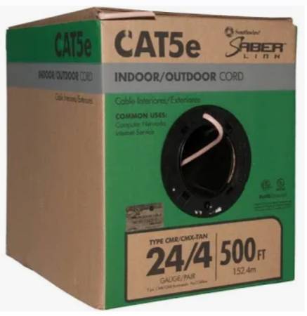 Cat5e UTP (unshielded twisted pair) CCA (Copper Clad Aluminum) 24 AWG bulk ethernet cable is ideal for your network installation. It comes in an easy to use pull box containing 500 ft of wire with a dark grey jacket. This unshielded cable comes in its own spool box and is connector free, giving the user the freedom to customize the length, wiring and application. APPLICATIONS: Indoor use Patch cables Crossover cables Other network installations TECHNICAL DATA: 500 FT Cat5e 4-pair unshielded twisted pair 24 AWG Solid CCA (Copper Clad Aluminum) **Warning! Please note this Ethernet cable is made from Copper Clad Aluminum and therefore is NOT UL, NEC, ETL, or TIA certified.