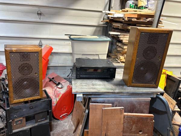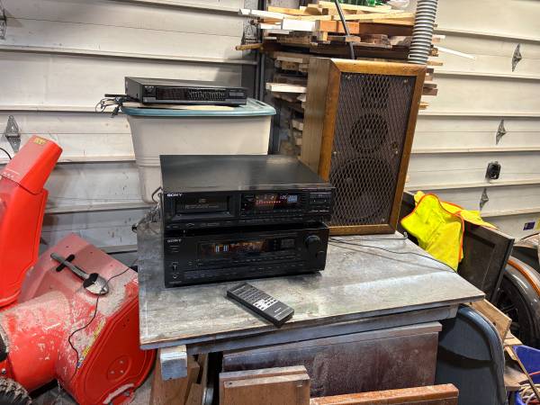 Sony Stereo STR-D790 Sony 10 disc changer with remote Drives these speakers real well Speakers sound loud and clear 10” Woofers 4” Midrange 1.5” Horn Tweeters Made with real wood Overall size 22”...