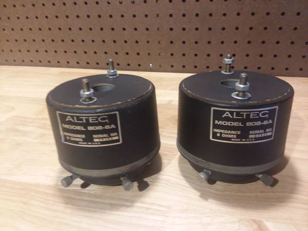 Very clean, structurally sound Altec 511A horns. Gunmetal powder coat, not perfect but pretty close. Comes with non working compression drivers, needing new diaphragms. Meet me at Best Buy On Eureka...