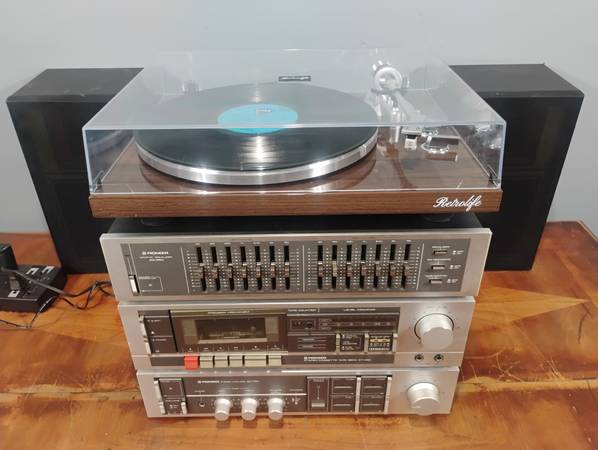 Nice Retrolife Turntable that has Phono / Line & Bluetooth so you can connect to any receiver or bluetooth speaker. Turntable has a nice modern design with the wood grain retro vibe.