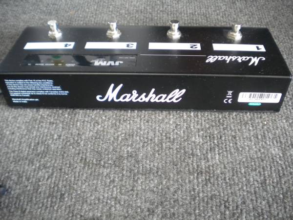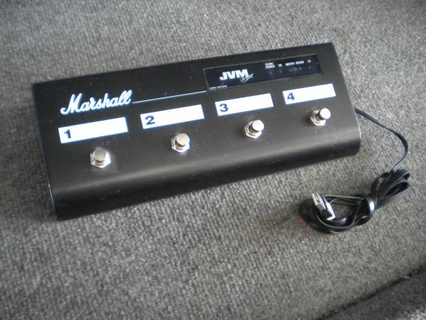 Marshall JVM 4 Way Foot Pedal Switch PEDL-00045. This 4-way footswitch is designed to work with the JVM series of amps. The blank areas above the switches can be tailored to individual liking. Uses a standard 1/4" plug. Please call show contact info