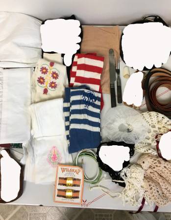 Various Historical (Civil War, Renaissance, Medieval) Costume Accessories - Includes stockings, belts, cap, snoods, pouches, men's shirts (modern style) still in packages, etc. Items sold separately. Priced $1-$10.