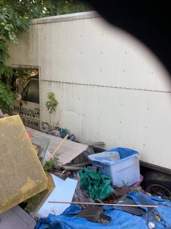 For sale is a forJunk Only, As-Is, Ford Box Truck, hasn’t ran in 15 years, you remove, no liability on property as you move, buyer is responsible to move, tires are into the ground, sold as-is, junk status, $600 firm : at Bargain Dollar Resale 3755 Holborn Detroit, 48211, text before you come