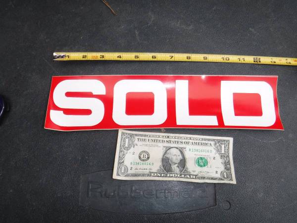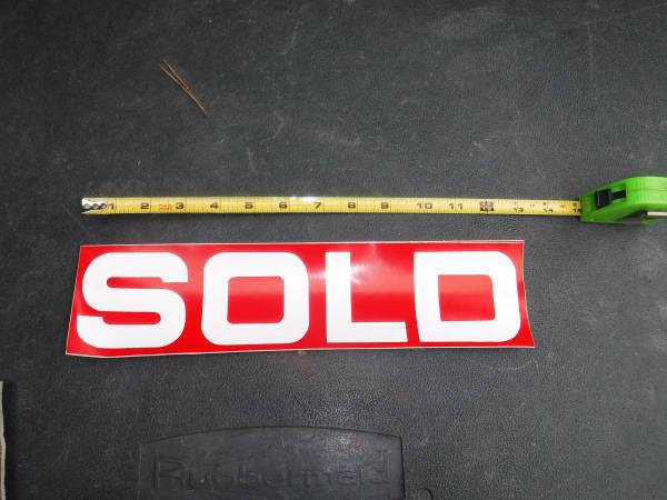 I have BOLD red and white SOLD stickers for sale. 13" x 3". Have about 25. Shipping available. $2 each Prank, House for sale, House sold, Toolbox, canoe, Kayak, Canoe, rat rod, jalopy, man cave,...