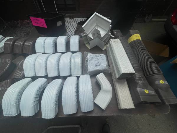 DOWN SPOUT PARTS NEW AND USED A AND B ELBOWS CORNERS SOME COMMERCIAL SIZES MOST SIZES 2x 3 BROWN & WHITE $2.00 EACH