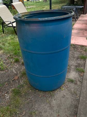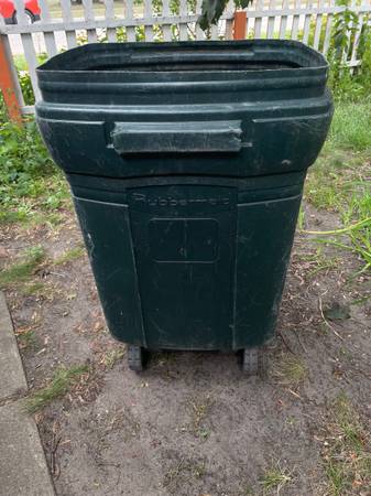 TRASH CAN LIDS RUBBERMAID 22 1/4 “ DIAMETER 2 AVAILABLE $3.00 EACH HEAVY DUTY BARREL $8.00 TRASH CAN WITH WHEELS HAS NO LID $7.00