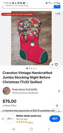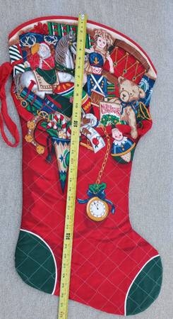 New - 3 Cranston Vintage Handcrafted Jumbo Stocking Night Before Christmas 17x32 Quilted!