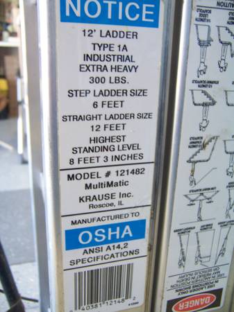 Ladder 12ft. , folding by Krause If interested call and/or leave message.