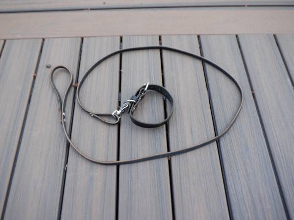 If ad is still listed here I still have it Leather Collar and Leash Leach is 6 foot long Collar will fit up to 16" neck Serious Inquires ONLY please call 734 area code 855-0236