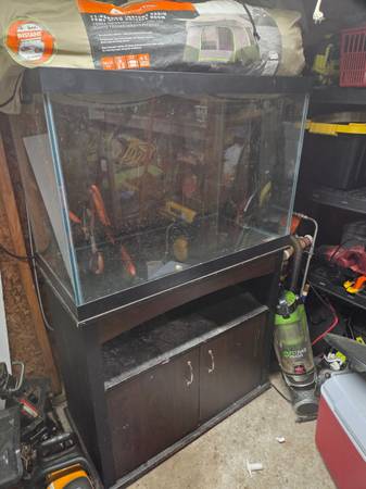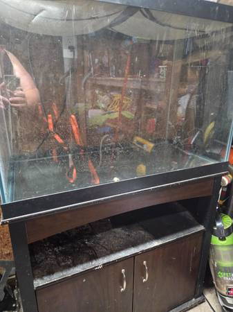 65 gal fish tank with stand. Good condition. Was a fully operational tank until 6 months ago. No leaks.