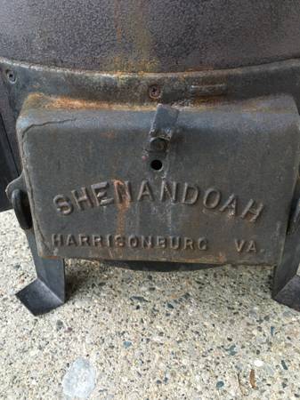Shenandoah top loading wood burning stove, nice external dampener, new shaker plate, recently replaced fire bricks. Can be used to burn Nut Coal also Call or text Mike @ (734) 8 three 7-76 one 9