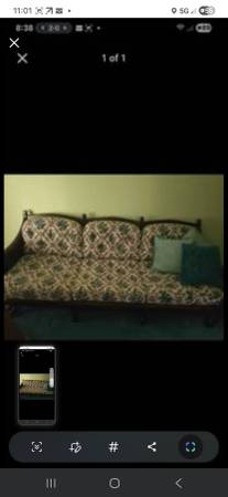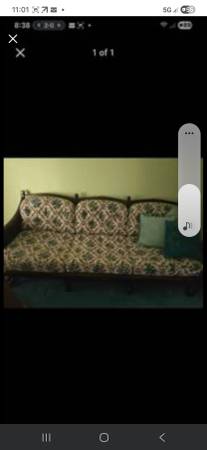 Solid vintage wood framed sofa from Boone Furniture Co. Measures 34"x81"x31" This is a solid couch, but cushions will have to be replaced, not because of wear, but because of age