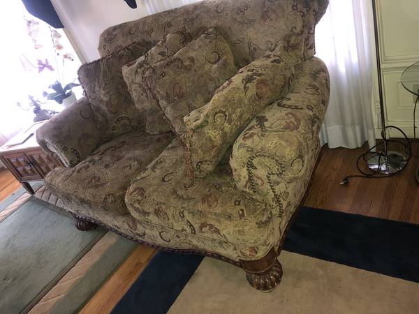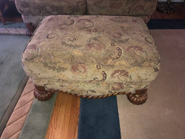 We are selling a great living room furniture set. As mentioned in the title, it includes one long couch, one love sofa, and one arm chair with a hassock. This set is in wonderful condition with NO damage. We are getting rid of this beloved set to make room for some new furniture.