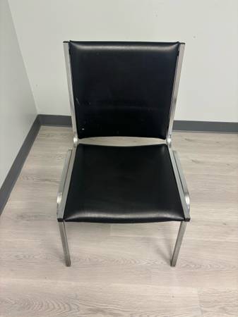 Upgrade your office, conference room, or event space with these 13 matching modern black chairs. They feature a chrome sled-base frame and a smooth black seat/back, giving a clean, professional look.