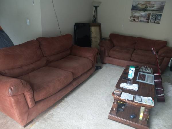 I reduce the price by 50% because of the quirks. The springs are worn on the love seat, so I put a blanket under the cushions and it works fine. On the sofa, the front board under the material seems to be sagging, so it's more looks, but seats fine. The cloth is in really good condition.